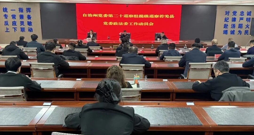 按照自治州党委巡察工作的统一部署,2025年12月29日,自治州党委第二十巡察组提级巡察若羌县委政法委工作动员会召开。会上,州党委第二十巡察组组长作了动员讲话,若羌县委副书记、政法委书记主持会议并作表态发言。