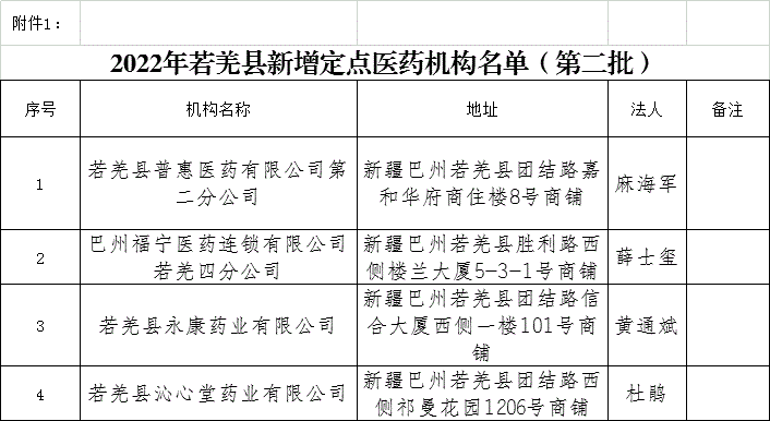 附件1:2022年新增定点零售药店机构名单(第二批)