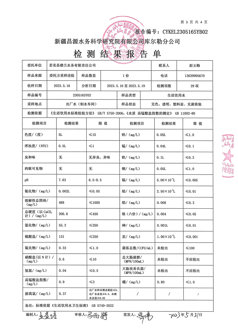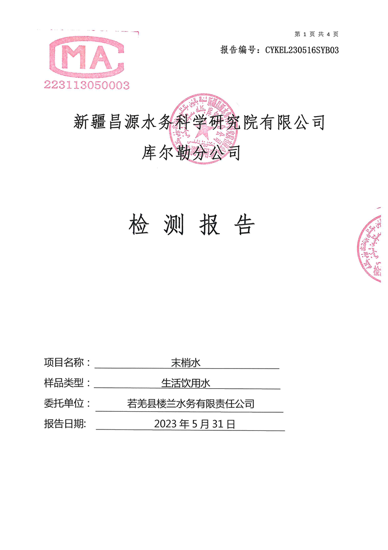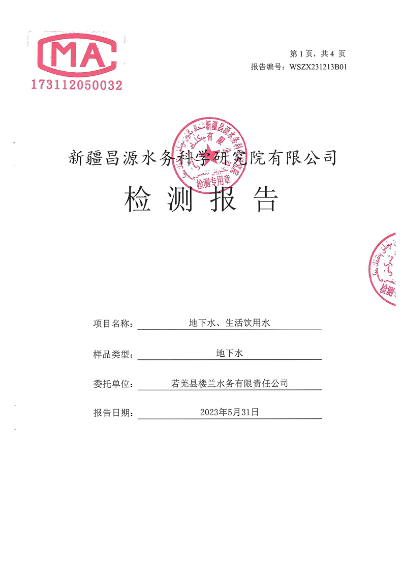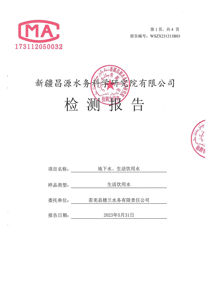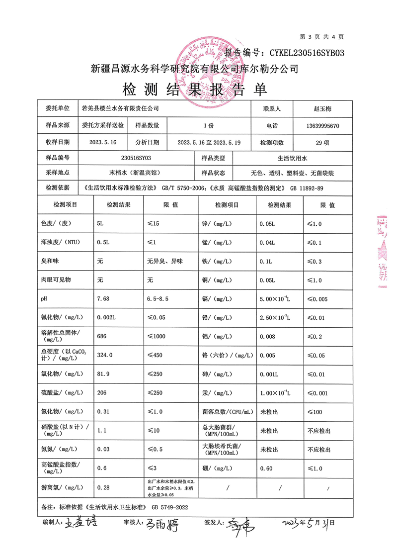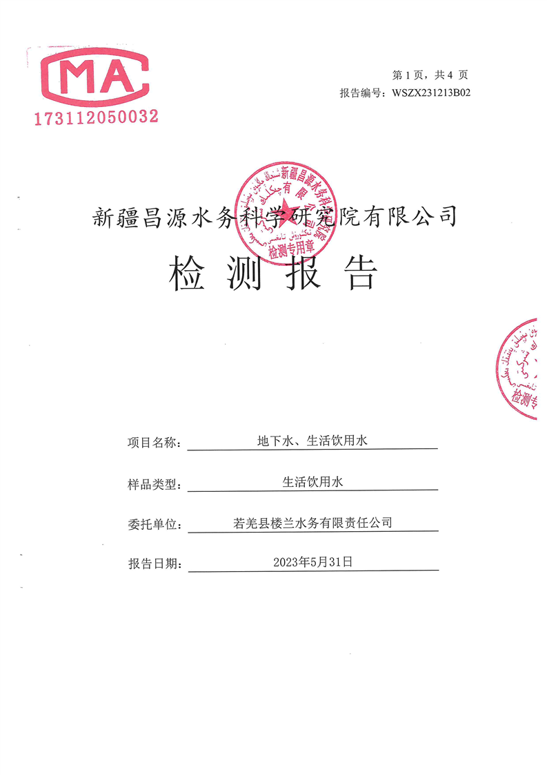若羌县卫健委2023年第二季度生活饮用水检测结果公示