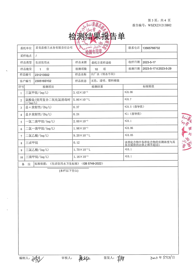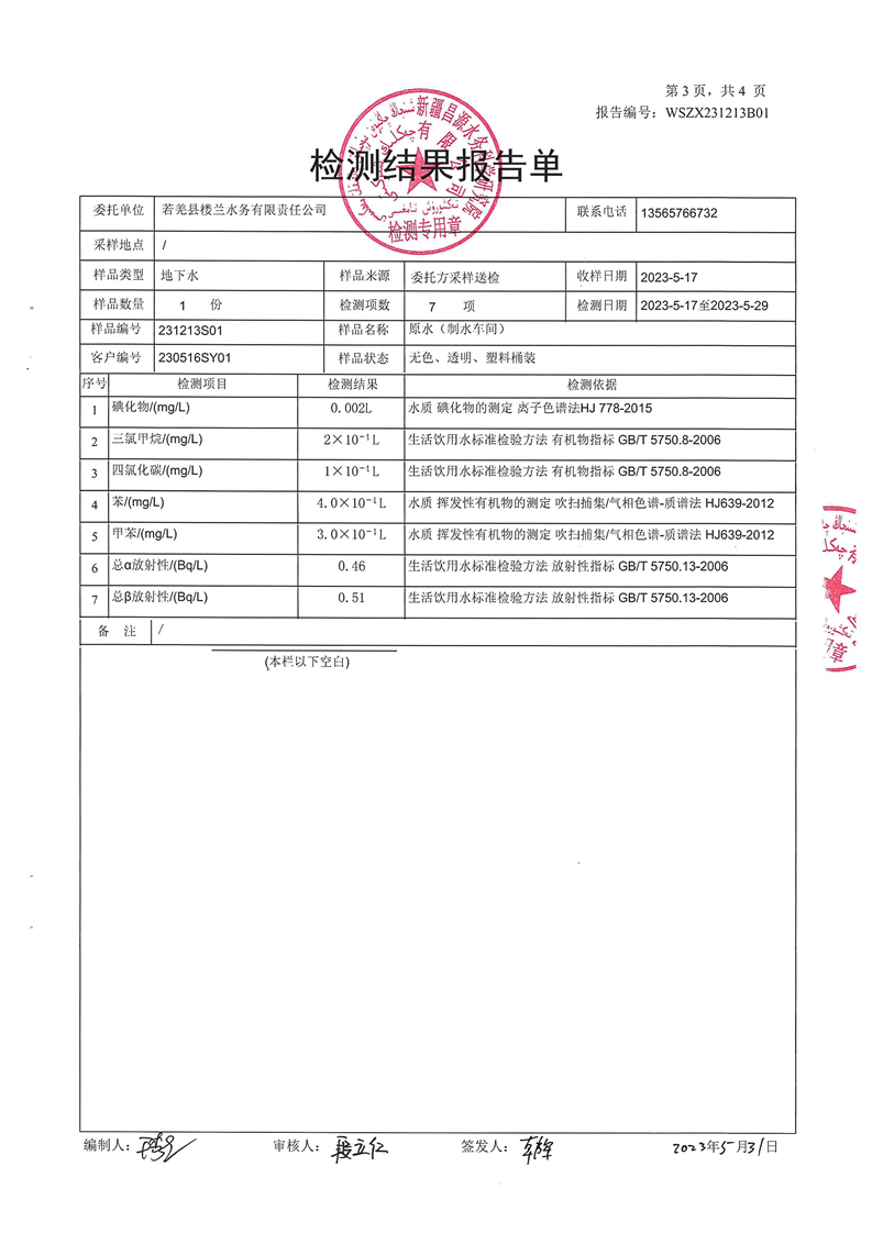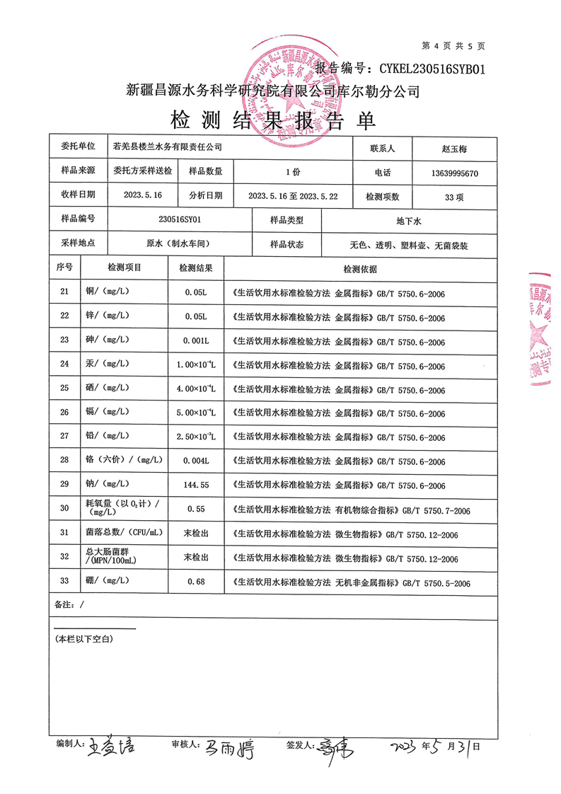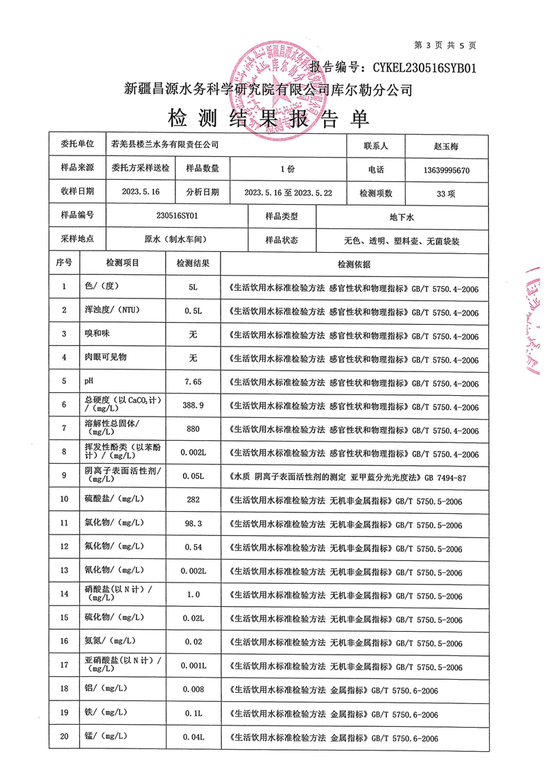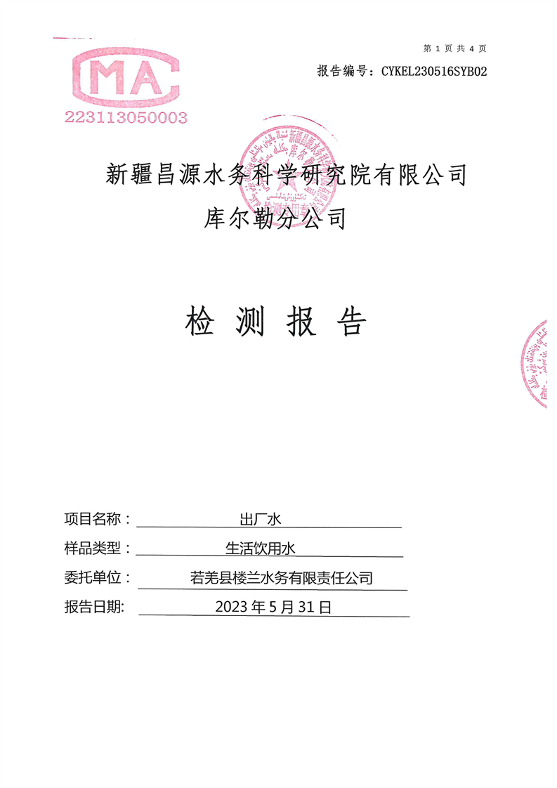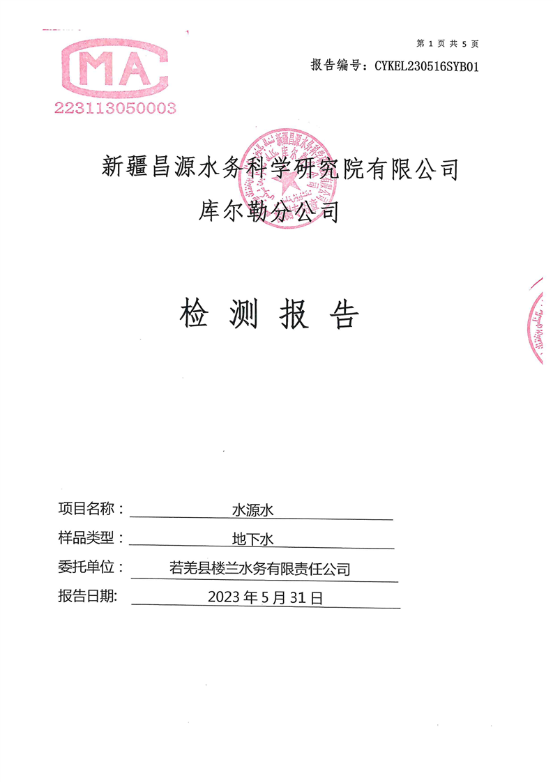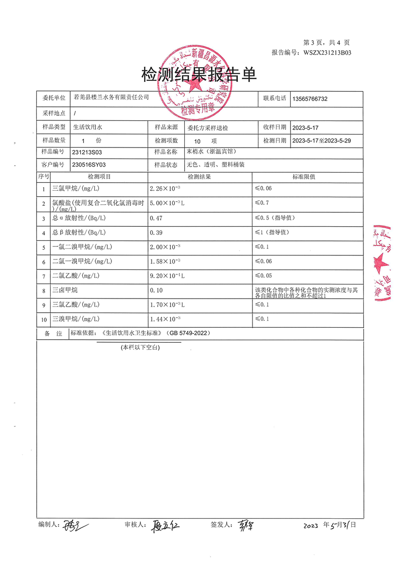 若羌县卫健委2023年第二季度生活饮用水检测结果公示