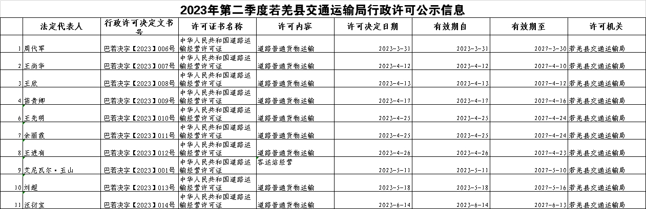 2023年第二季度若羌县交通运输局行政许可公示信息