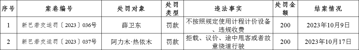 若羌县交通运输局行政处罚公示(2023.10.17)