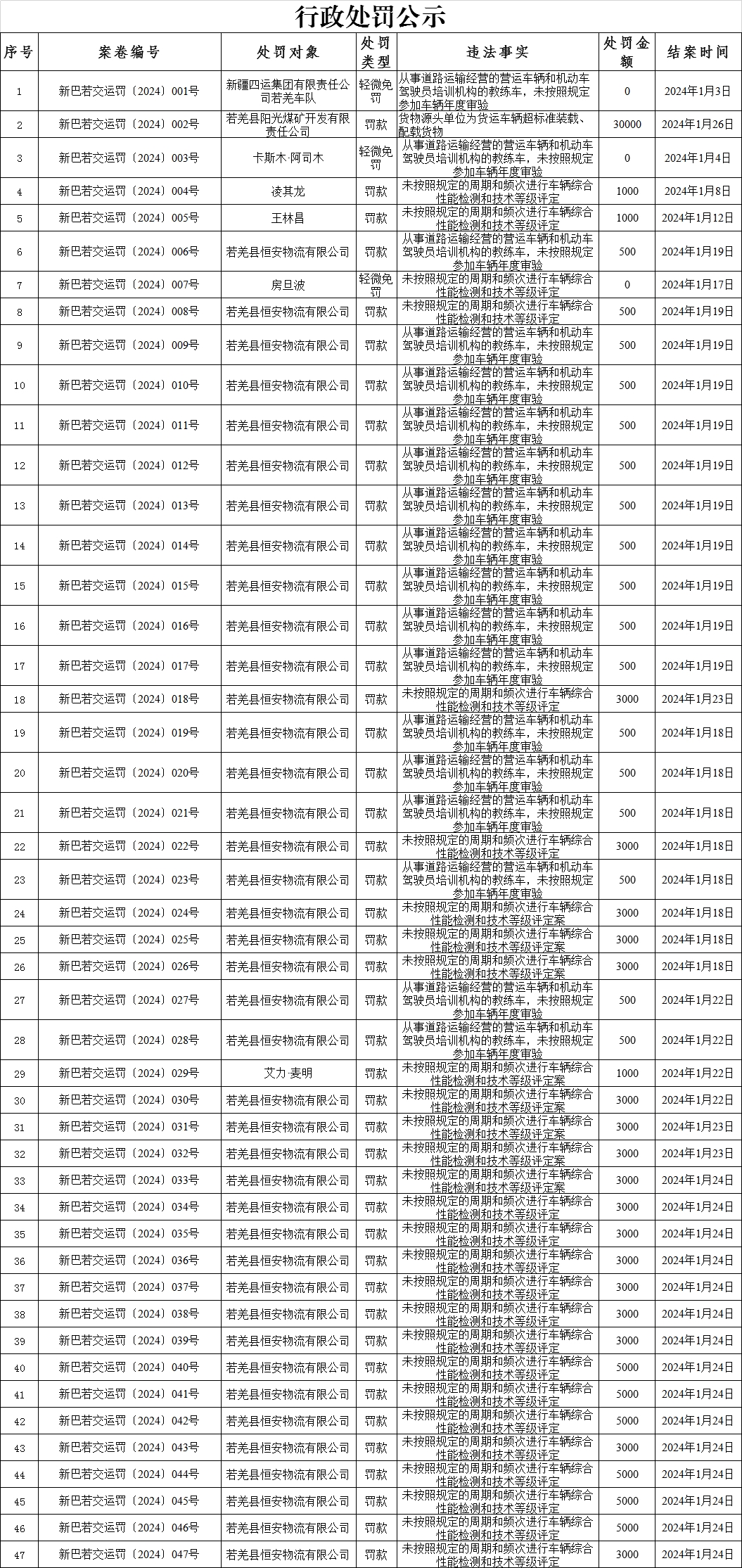 若羌县交通运输局行政处罚公示(2024.01.29)