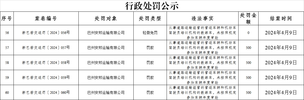 若羌县交通运输局行政处罚公示(2024.04.09)