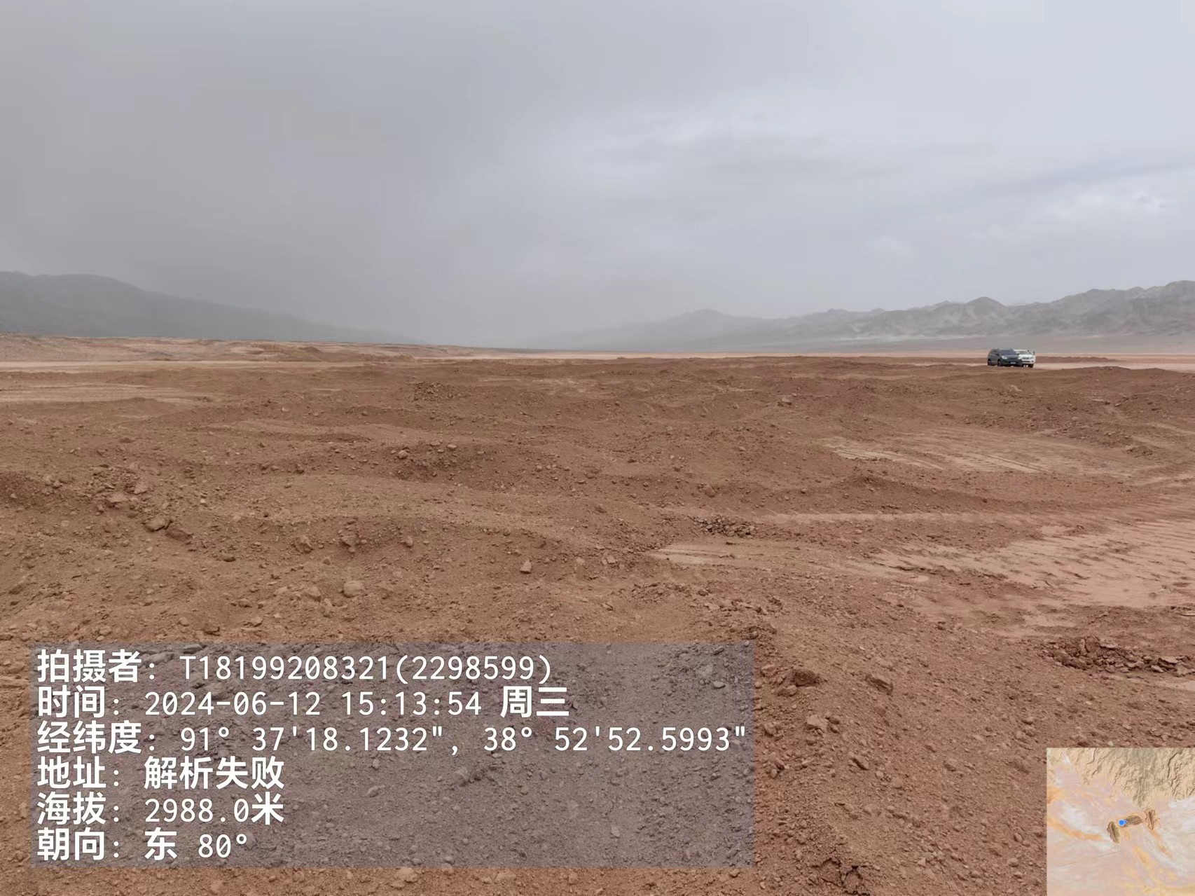 图1照片:问题线索位于拉配泉,315国道右120公里处(不在军事禁区),长约800米、宽约200米、深9米,开挖者不详,用途不详。
