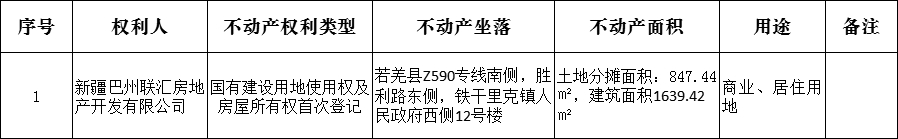 不动产首次登记公告(新疆巴州联汇房地产开发有限公司)