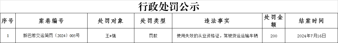 县交通运输局行政处罚公示(2024.07.16)