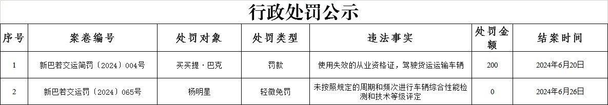 行政处罚公示(2024.6.26)