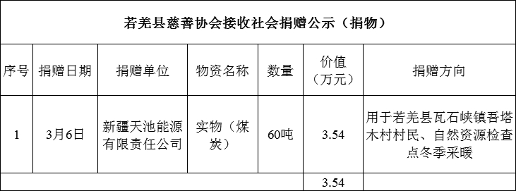 若羌县慈善协会接收社会捐赠公示(捐款)