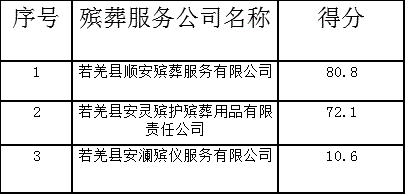 根据《自治区发展改革委、财政厅、民政厅、市场监督管理局关于加强我区殡葬服务收费管理工作的通知》(〔2025〕363号)和加强殡仪馆(站)回归属性等相关法律法规及政策文件,若羌县安灵殡护殡葬用品有限责任公司、若羌县顺安殡葬服务有限公司和若羌县安澜殡仪服务有限公司进行公平、公正评估,并对评估结果进行网上公示。