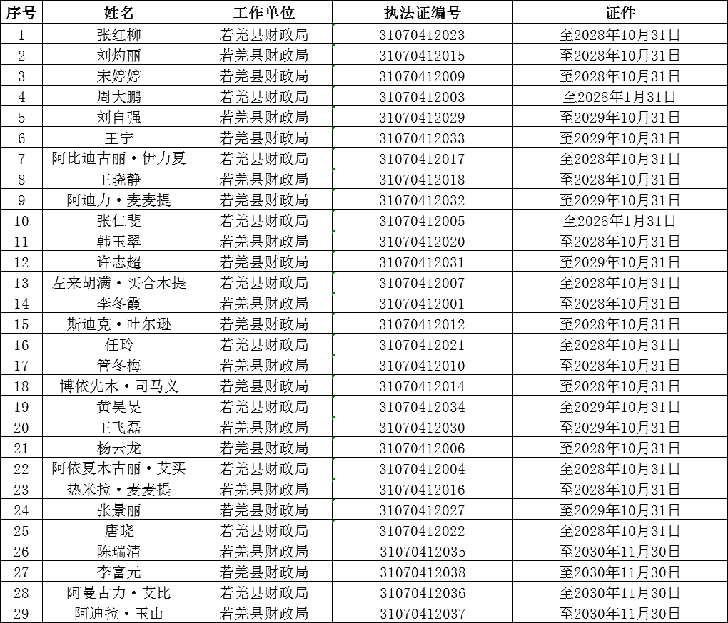 若羌县财政局执法人员公示