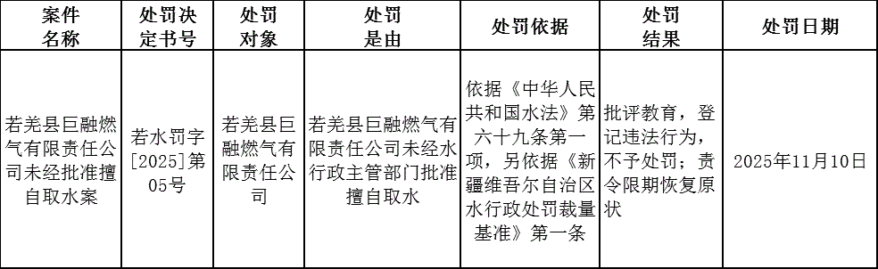 若羌县水利局行政处罚案件公示信息