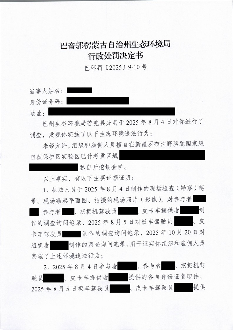 行政处罚决定书(巴环罚〔2025〕9-10号)
