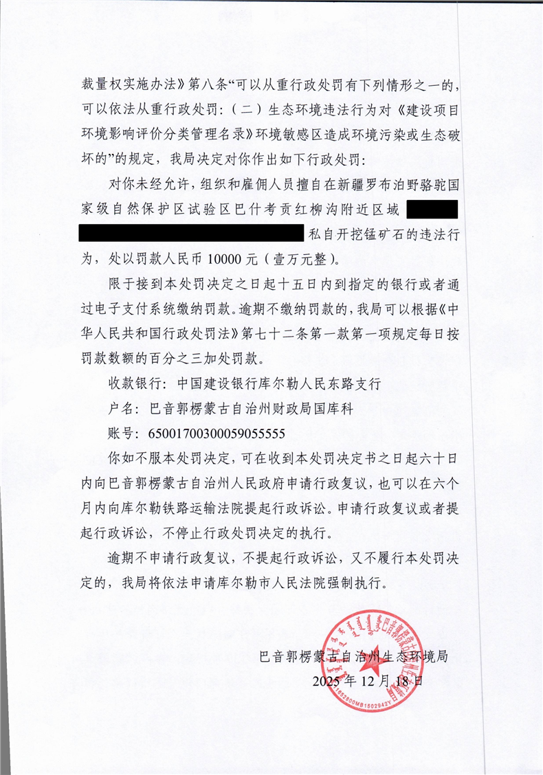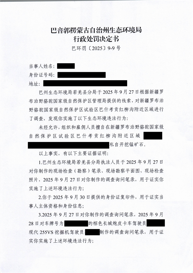 行政处罚决定书(巴环罚〔2025〕9-9号)
