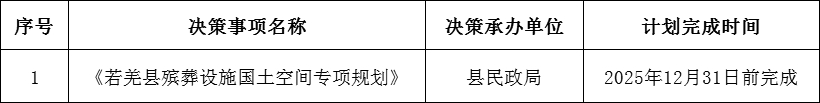 附件:若羌县人民政府2025年度重大行政决策事项目录