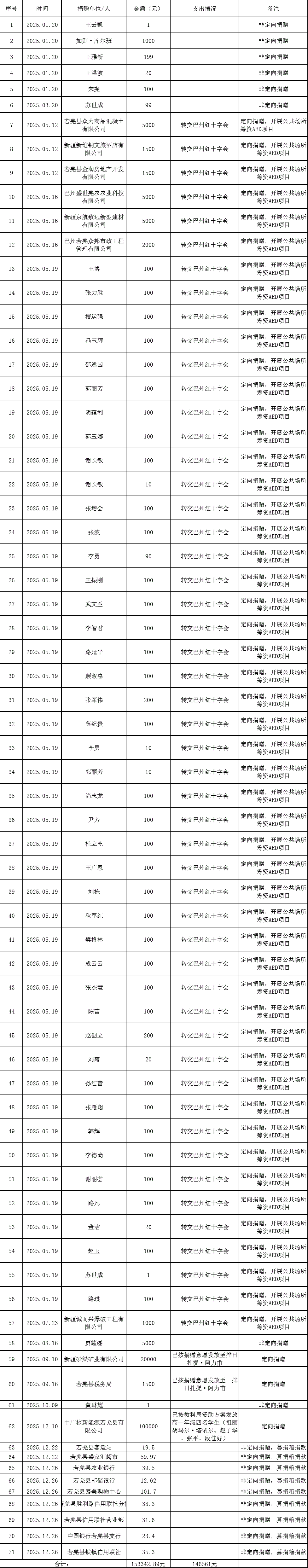 为保障接受捐赠款物过程公开,使用过程透明,若羌县红十字会根据《中华人民共和国公益事业捐赠法》《中华人民共和国红十字会法》等相关法律法规做好捐赠信息公开,接受社会各界监督,现将2025年度接受捐赠款物和使用情况予以公示。