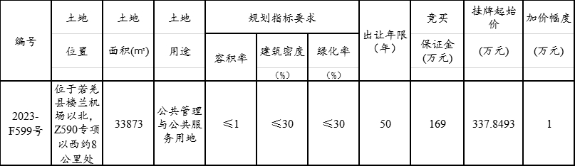 根据《中华人民共和国土地管理法》等法律法规规定,经若羌县人民政府批准,若羌县自然资源局决定以挂牌方式出让1(幅)地块的国有土地使用权。现将有关事项公告如下: