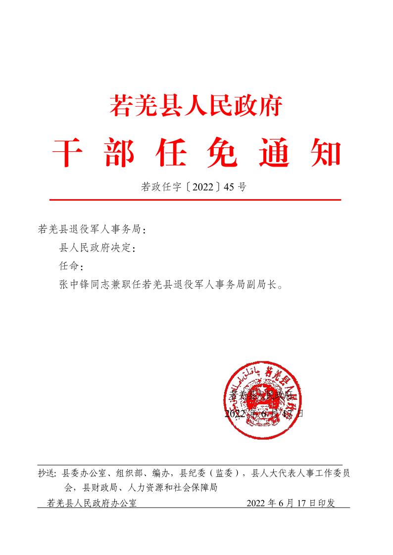关于张中锋同志的职务任免通知