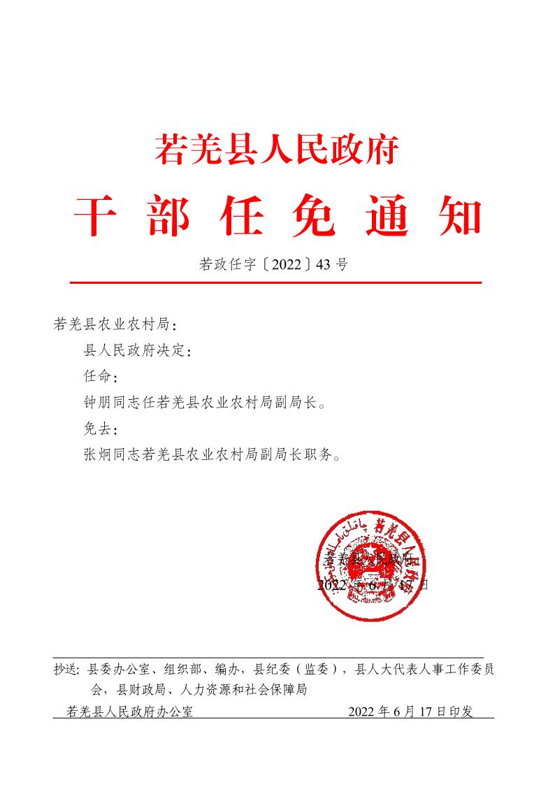 关于钟朋同志的职务任免通知