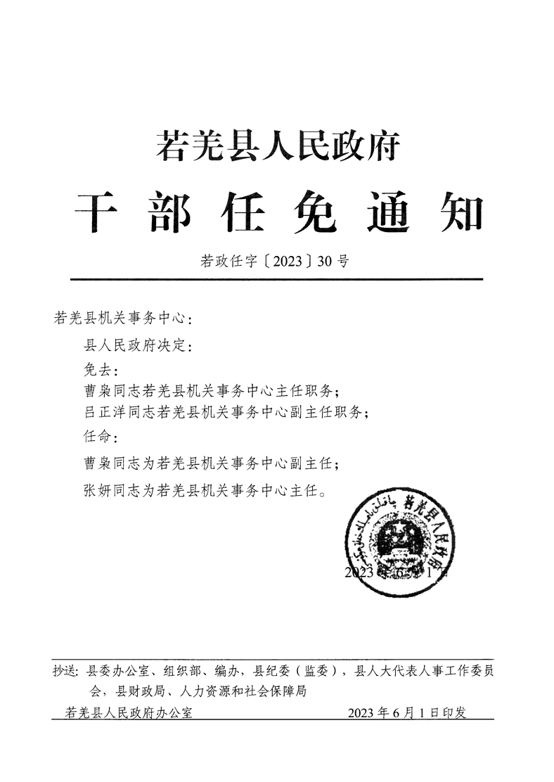 关于曹枭等同志职务任免的通知