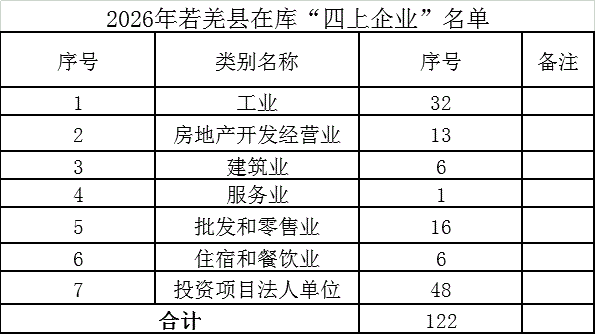 年初以来,若羌县统计局联合县发改、商工、市监、税务等部门,常态化开展达标企业排查申报工作,建立临规企业后备库,精准挖掘大个体潜力主体,高效推进“升规纳统”“个转企”培育工作。截至目前,全县“四上”企业达122家,其中:工业32家、建筑业6家、批发和零售业16家、住宿和餐饮业6家、服务业1家、房地产开发业13家,投资项目法人单位48家。