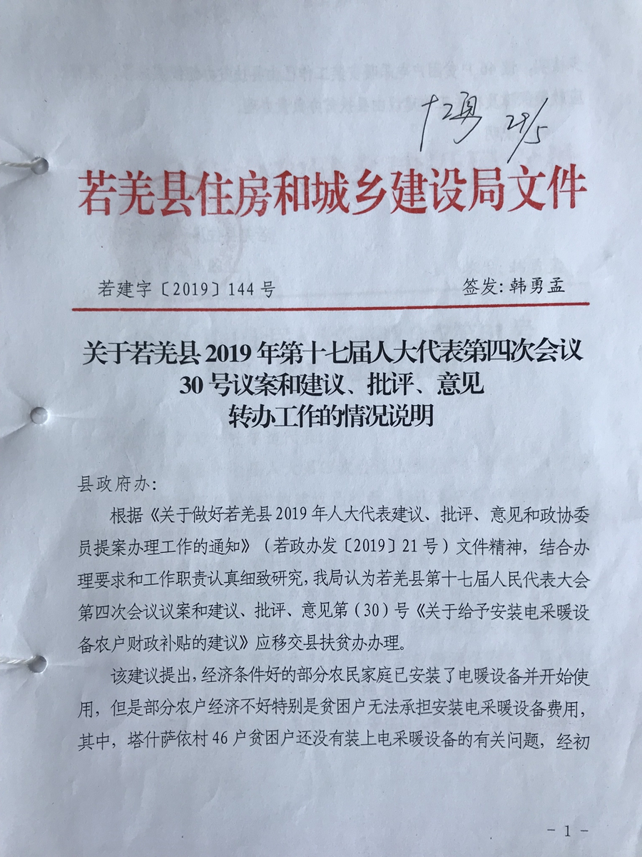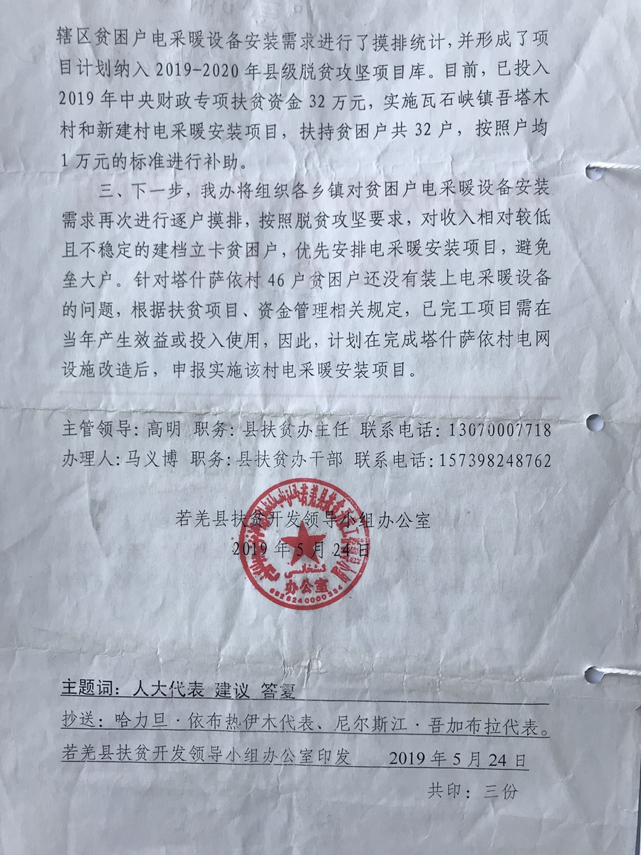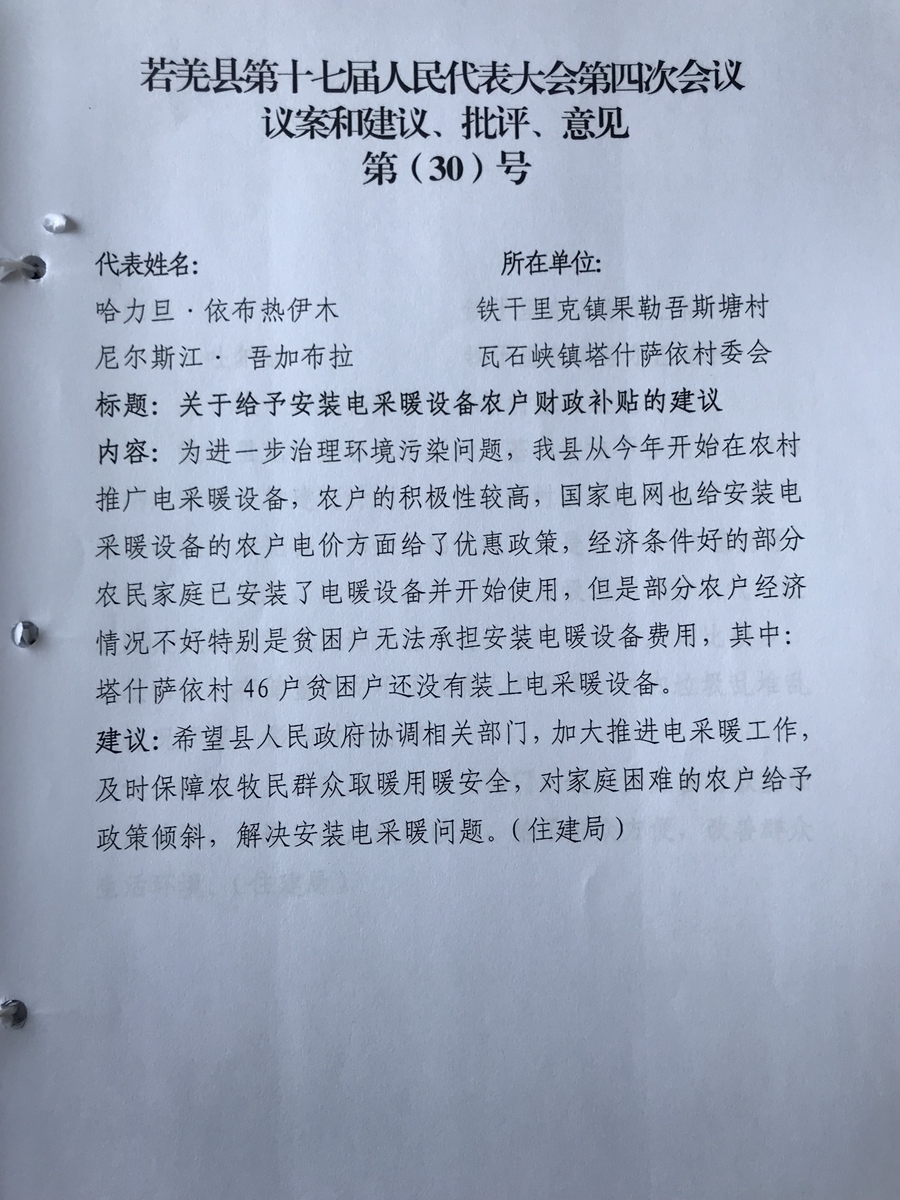 关于给予安装电采暖设备农户财政补贴的建议及答复