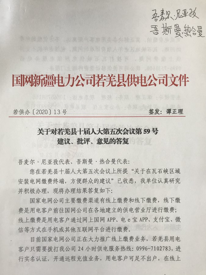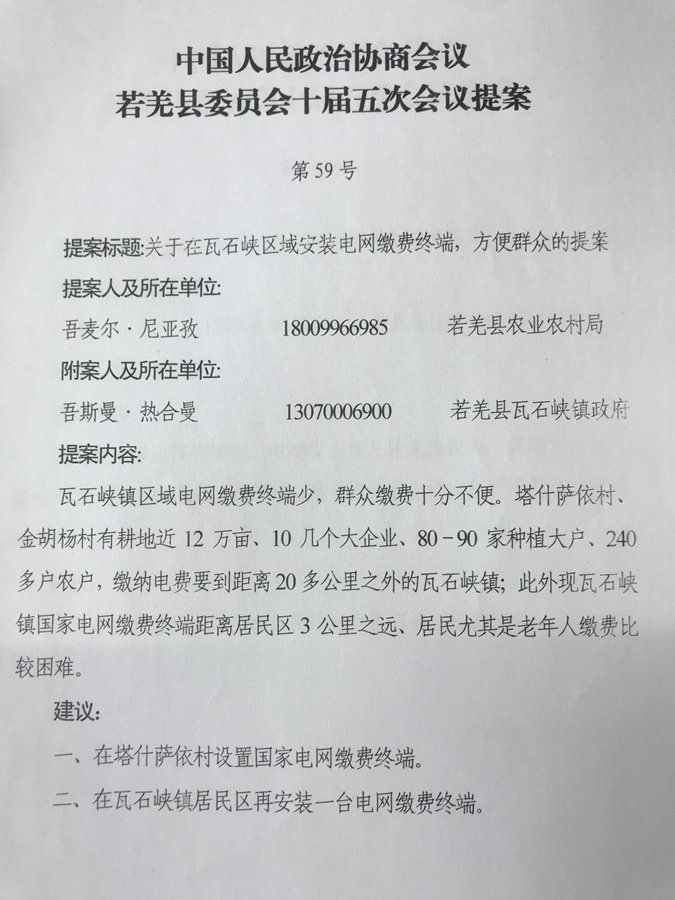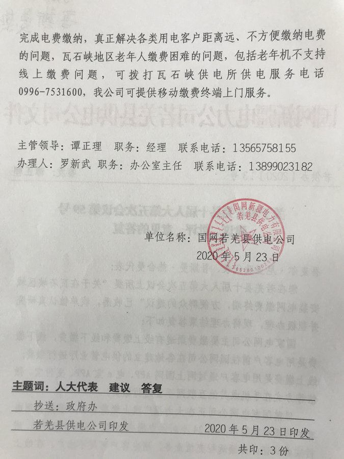 关于在瓦石峡区域安装电网缴费终端,方便群众的提案及答复