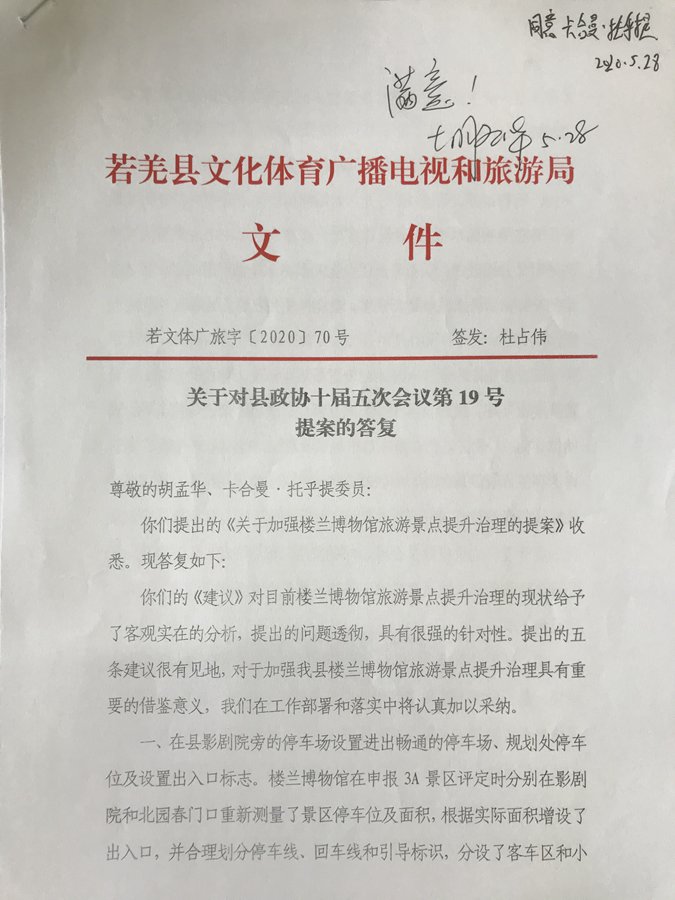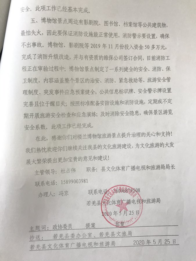 关于加强楼兰博物馆旅游景点提升治理的提案及答复