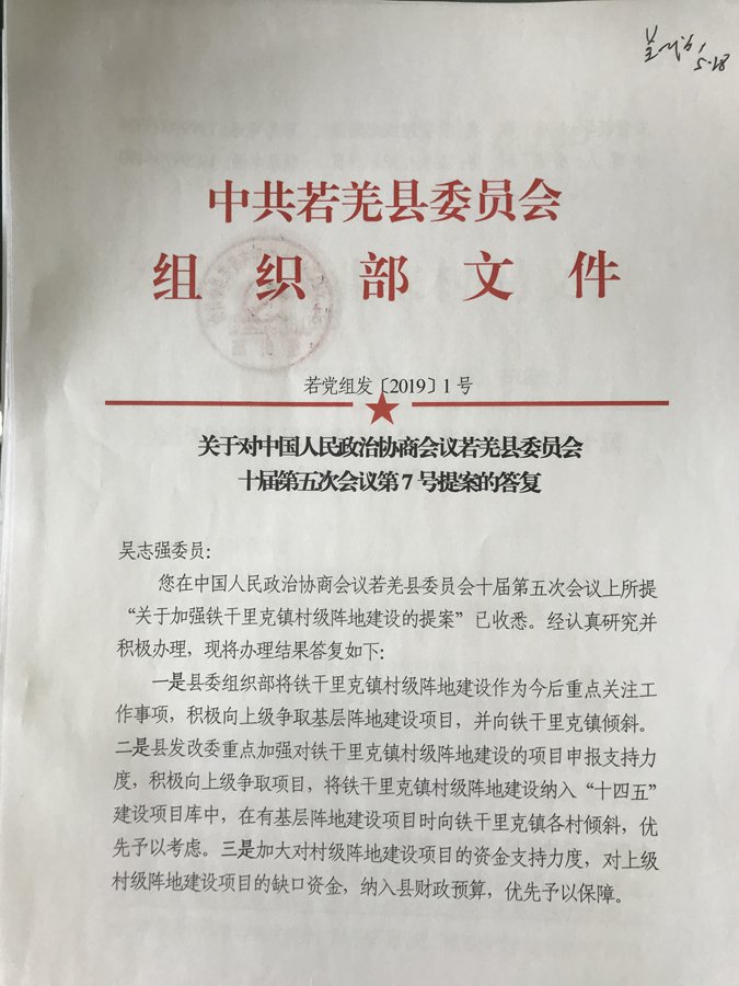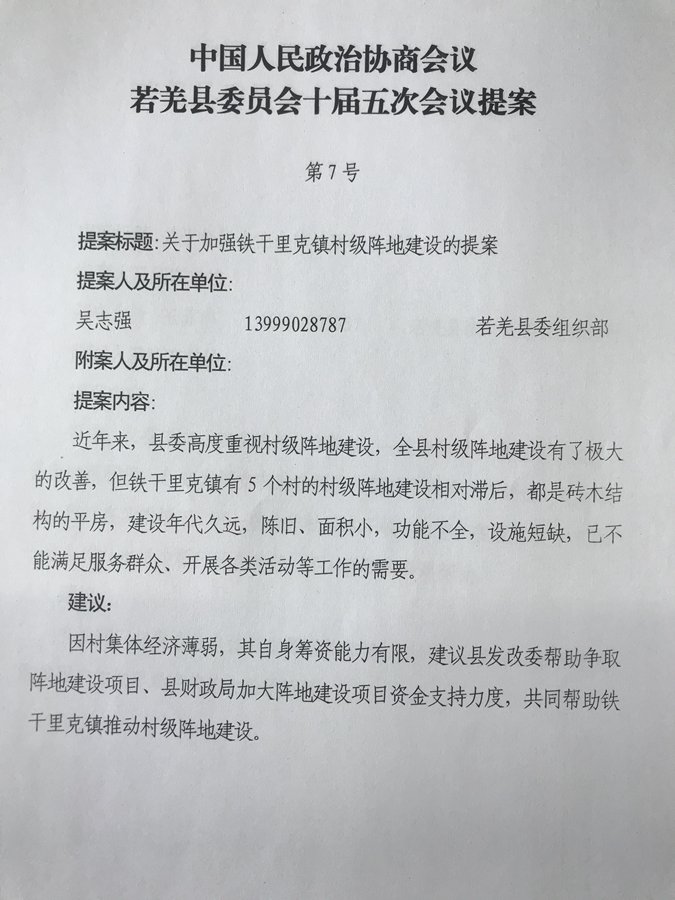 关于加强铁干里克镇村级阵地建设的提案及答复