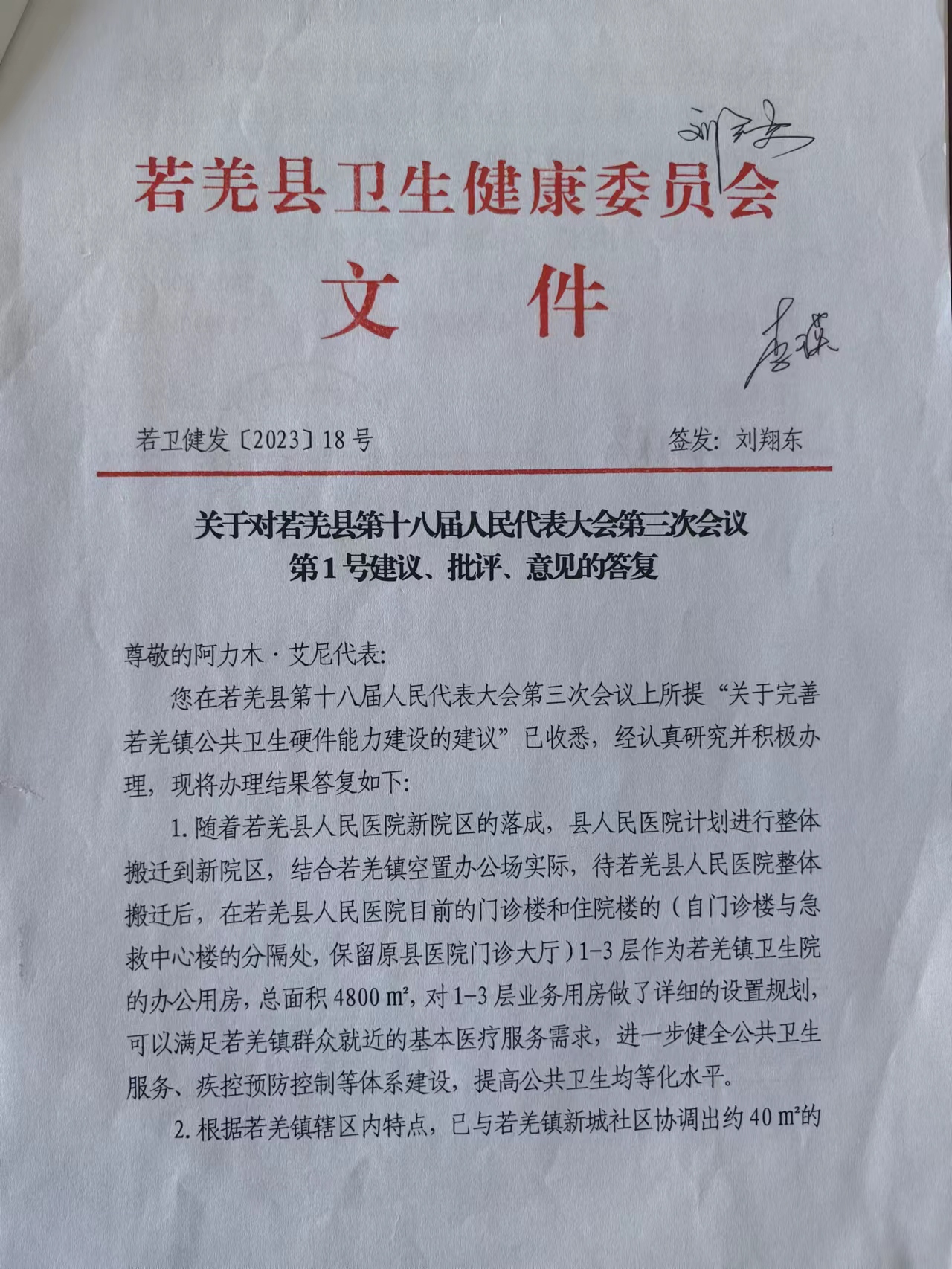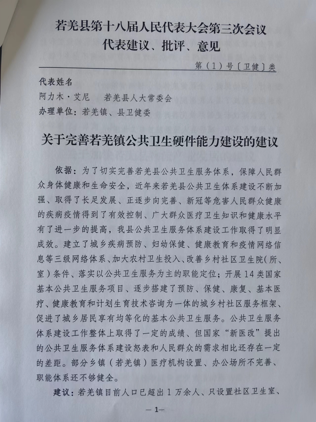 关于对若羌县十八届人大第三次会议第1号建议的答复