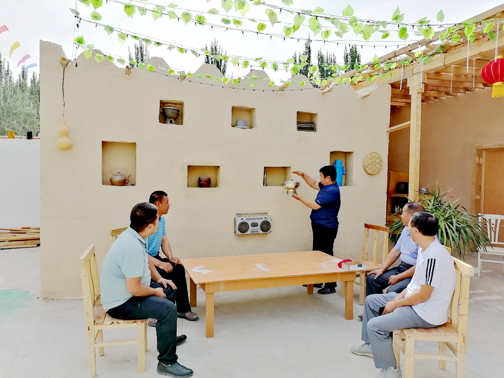6月2日,若羌县铁干里克镇亚喀吾斯塘村委会对面的庭院里人头攒动,热闹非凡。在一阵噼里啪啦的鞭炮声和各族群众的欢呼声中,村民聂金元的农家乐在工作队的帮助下顺利开业了!