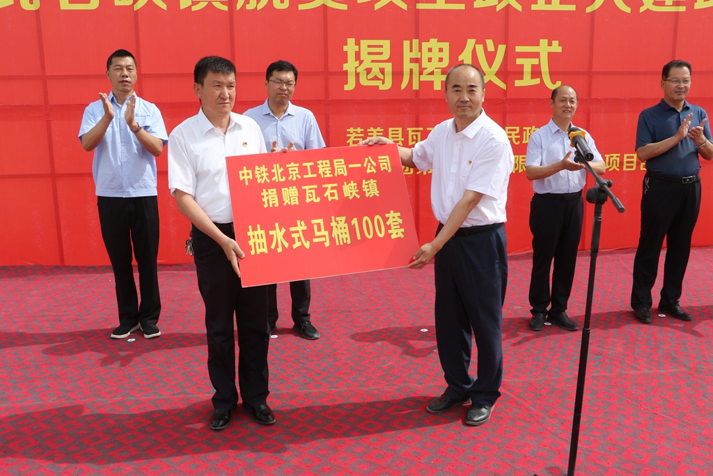 活动中,刘文春常委作致辞,他表示,中铁北京局为感谢瓦石峡镇对企业的大力支持,在得知瓦石峡镇正在大力推行厕所革命、部分贫困户家庭没有马桶的情况下,想群众之所想急群众之所急,及时与镇政府对接为贫困户捐赠马桶100套,彰显了中铁北京工程局集团第一工程有限公司甘于奉献主动承担社会责任的央企风范。