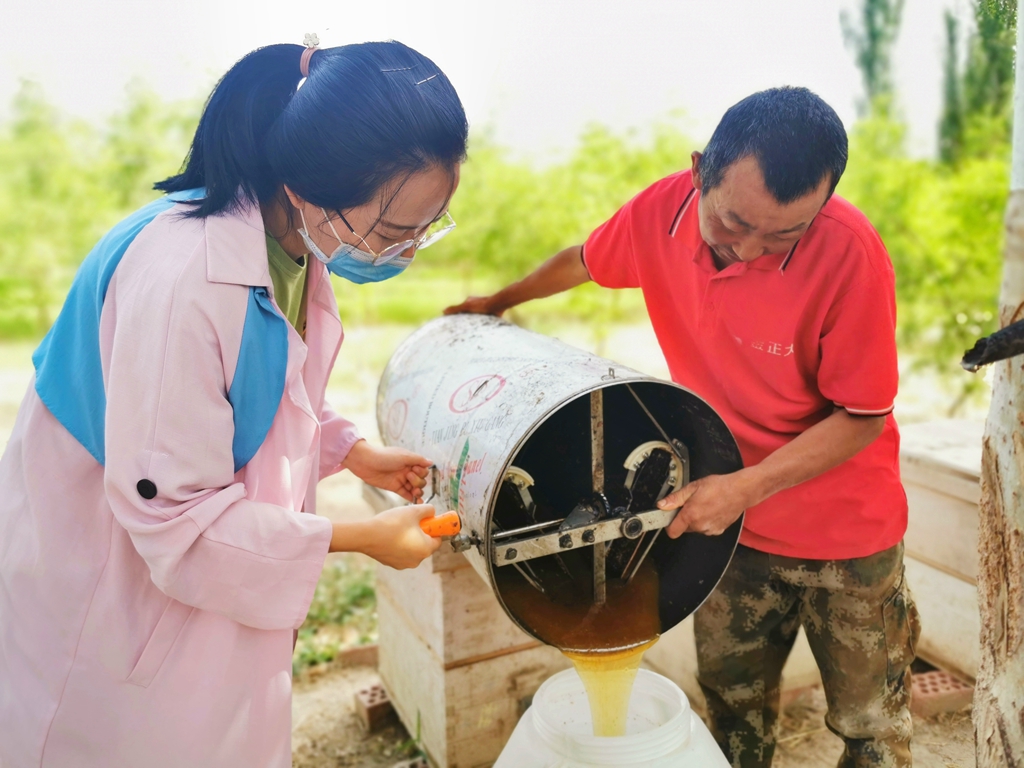 “我做枣花蜜和沙枣蜜到现在已经8年了。今年因为市场需求,年初的时候又扩展了五六十个养殖蜜蜂采蜜的箱子,平均分布在三个养蜂点。因为现在市场需求较大,我计划明年再扩展一百个蜂箱来供应市场需求,希望今年能风调雨顺,产量高一点,蜂蜜质量好一点,通过工作队同志的宣传和大家的努力,一起把我们的蜂蜜卖向全国,让更多的人了解若羌、爱上若羌。”李秋平充满期待的对笔者说。