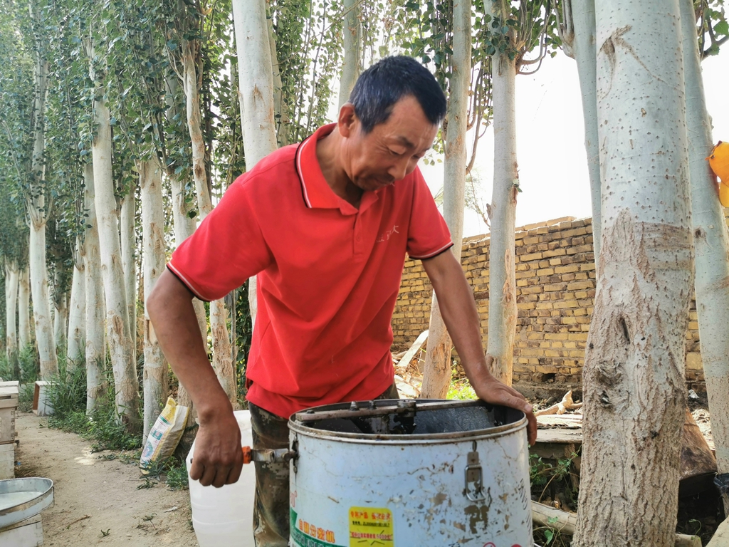据了解,李秋平家共有600余亩红枣地,因身体原因不方便外出务工,平时的主要经济来源就是家里的红枣地和养蜂酿造的蜂蜜。2011年,在和父亲聊天时说起每年枣树开花时家里都有较好的蜜源,可以考虑在家里弄个养蜂场赚取额外收入,充实业余生活。说干就干,李秋平立即联系了县农业农村局的技术人员,并跟班学习养殖经验,在养蜂场,认真学习养蜂技术,切实掌握养蜂本领。2012年,李秋平通过在农业农村局学到的知识,从吐鲁番地区引进了第一批意大利蜂种开启了自己的养蜂模式,并运用自己的养蜂技术,带动其他村民一起发家致富,截至目前,李秋平共设养蜂点6个,蜂箱三百余个,平均月收入达一万元左右。