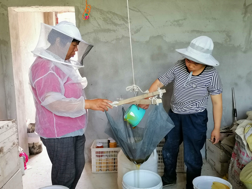 “最近的枣花蜜订单火爆,今天一早就卖出去了两千多元,现在工人都在忙着摇蜜、过筛,大家忙的乐此不疲”若羌县铁干里克镇亚喀吾斯塘村村民李秋平感激的说,多亏了工作队同志的帮忙才让我们家蜂蜜的销路越来越广、生意越来越好!
