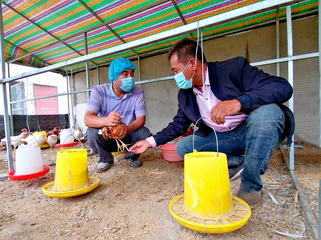 7月22日,“访惠聚”工作队队长和合作社负责人来到了鸡棚,查看小鸡成长状况、鸡棚消毒记录、疾病预防等情况。看着一群活蹦乱跳小鸡,大家的脸上洋溢出幸福的笑容。