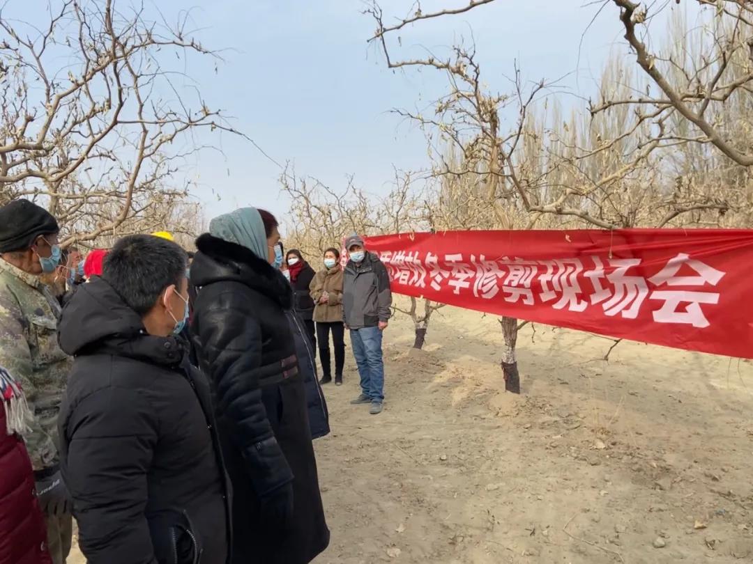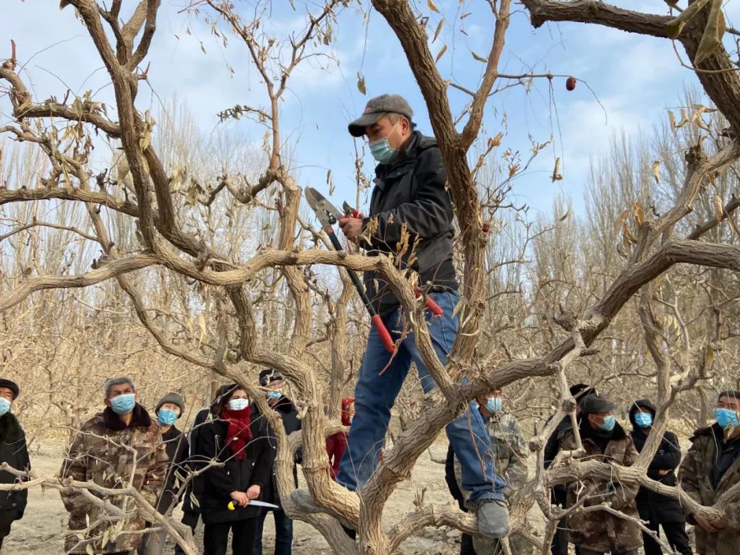 近日,为提升红枣种植户的枣树修剪管理技术,提高红枣果品质量,确保今年红枣提质增效、丰产丰收。若羌县红枣中心技术人员深入田间地头给村民培训红枣修剪技术,为今年的红枣增收打好基础。
