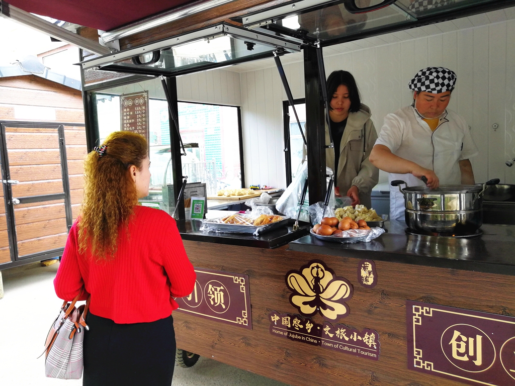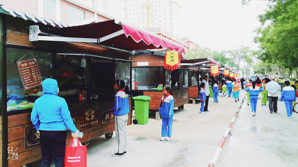 5月5日起,在划定好的经营区域内,一部部小餐车正在迎接着一位位顾客。致富餐车内设置各类炊具设施方便经营运转,满目琳琅、色香俱全的小吃美食吸引了不少前来光顾的食客。小餐车有一个共同的特点,那就是被经营者擦得发亮,干干净净。每一辆小车都被“打扮”起来,古色古香的窗棂、文化底蕴浓厚的棕色小车,一股浓浓的“中国风”扑面而来。