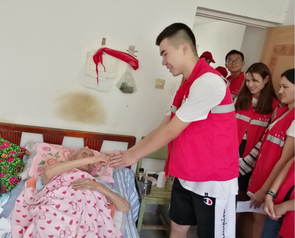 返乡学生来到老人家中,对他的生活嘘寒问暖、了解他的身体状况以及生活上的困难。随后大家卷起衣袖,拿起抹布,爬上窗台帮助老人收拾房屋,打扫卫生,在大家的共同努力下,老人家里的环境焕然一新,不但给老人送去了无限的温暖,还为老人创造了一个舒适的生活环境。