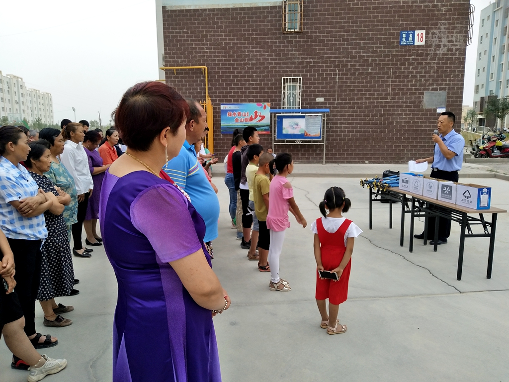 宣讲中,新城社区第一书记、“访惠聚”工作队队长张东方用通俗易懂的语言向居民群众宣传了当前开展垃圾分类的意义,细致的讲解了干垃圾、湿垃圾、可回收垃圾、不可回收垃圾和其它垃圾五类该如何区分,并告知垃圾分类给生活、生态环境保护的益处。进一步增强了广大居民群众对垃圾分类的认识。