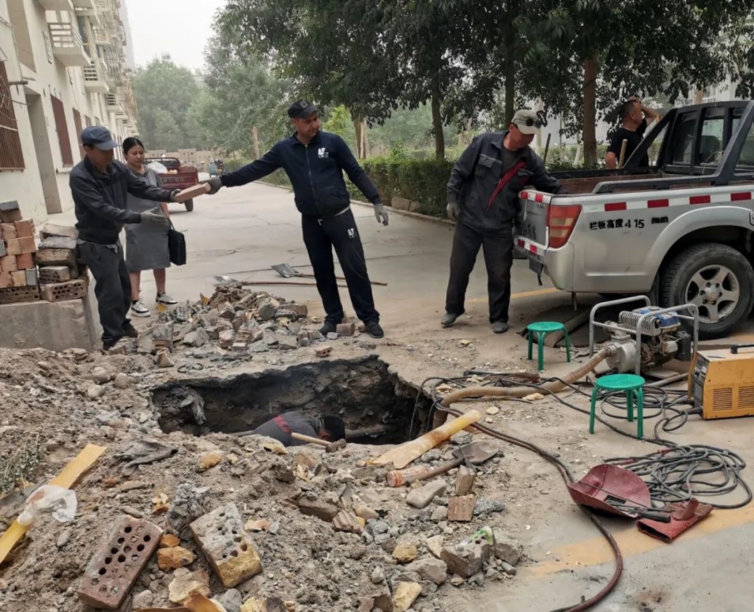 社区干部、县物业维修人员现场检查发现下水道被堵是由于下水主管道老化、破裂造成的,只有更换该侧的主管道才能彻底解决问题。经过20多个小时的奋力抢修,管道更换完毕,彻底解决了下水管道堵塞问题。