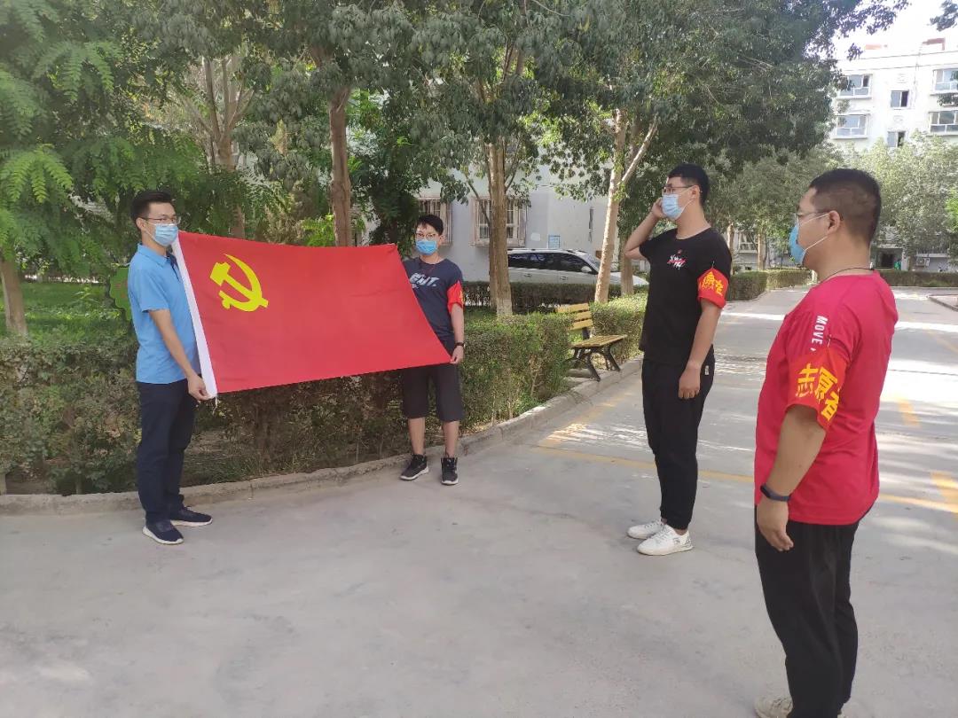“我志愿加入中国共产党,拥护党的纲领,遵守党的章程,履行党员义务······”7月27日,预备党员刘锐在党旗下庄严宣誓,成为一名光荣的共产党员。若羌县税务局机关党委指定2名党员在楼兰小区战“疫”一线,为其举办了一场简单的入党仪式。