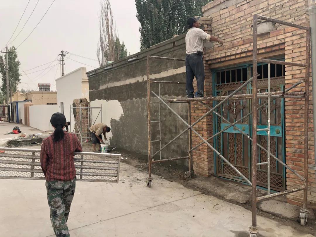 在瓦石峡镇第三小学东侧居民房,装修队正在砌砖、涂白墙壁,房主刘女士说:“住房时间长了,有些地方破损严重,镇政府了解情况后,联系装修队免费为我们刷白、整修。”