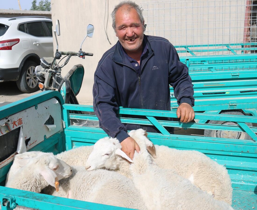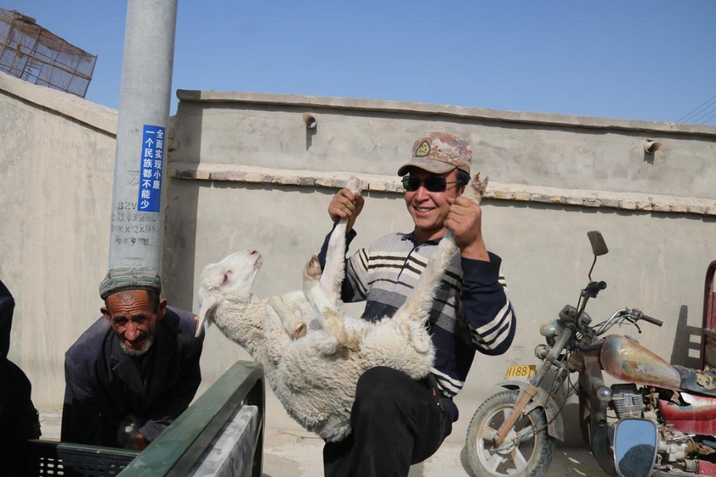 “走,领扶贫羊去”。家住吾塔木乡尤勒滚艾日克村的贫困户王春云开着三轮车,满脸笑意。