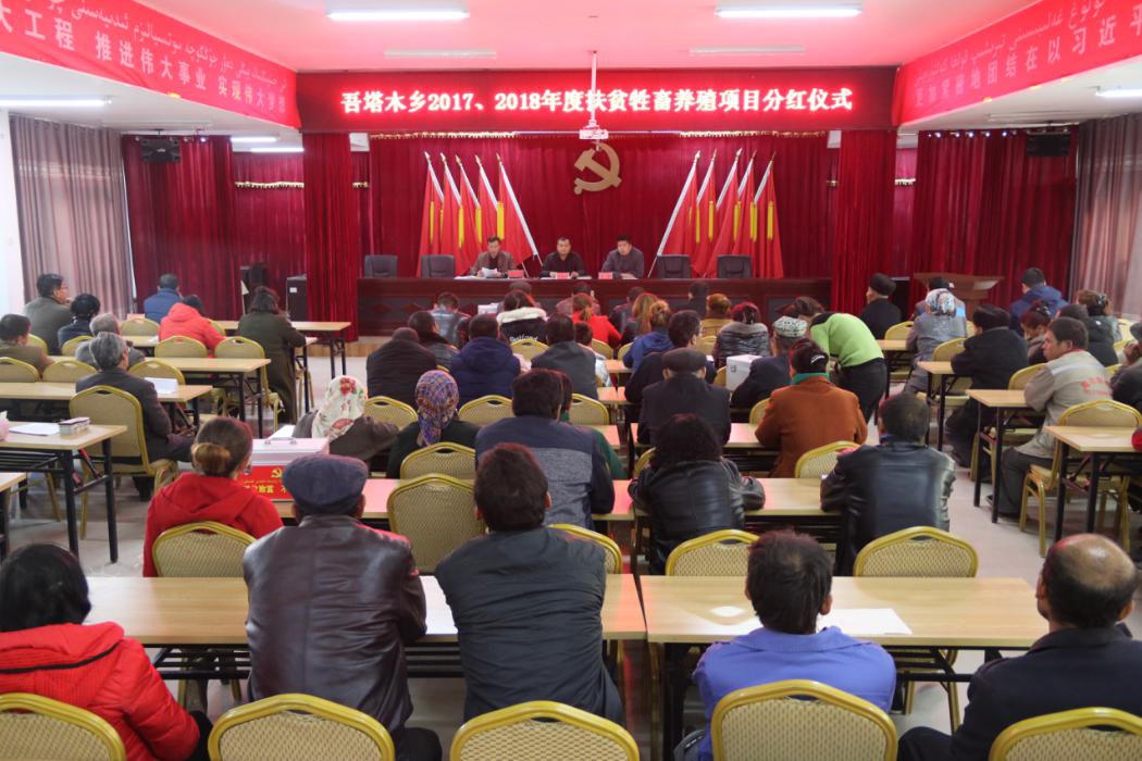11月13日下午,吾塔木乡举行2017、2018年扶贫牲畜养殖项目分红仪式。各村“两委”班子、“访惠聚”工作队、扶贫专干及全乡2017、2018年扶贫牲畜养殖项目受益贫困户共130余人参加此次分红仪式。