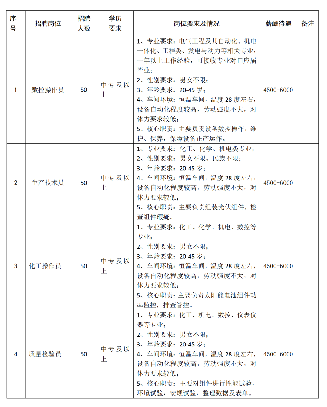 本次招聘岗位为新疆国晟企诚新能源有限公司全风险外包岗位,该公司经营涵盖发电、输电、供(配)电业务以及电线、电缆制造等许可项目,还有太阳能相关设备销售与制造、光伏设备及元器件销售与制造等一般项目。具体岗位招聘如下: