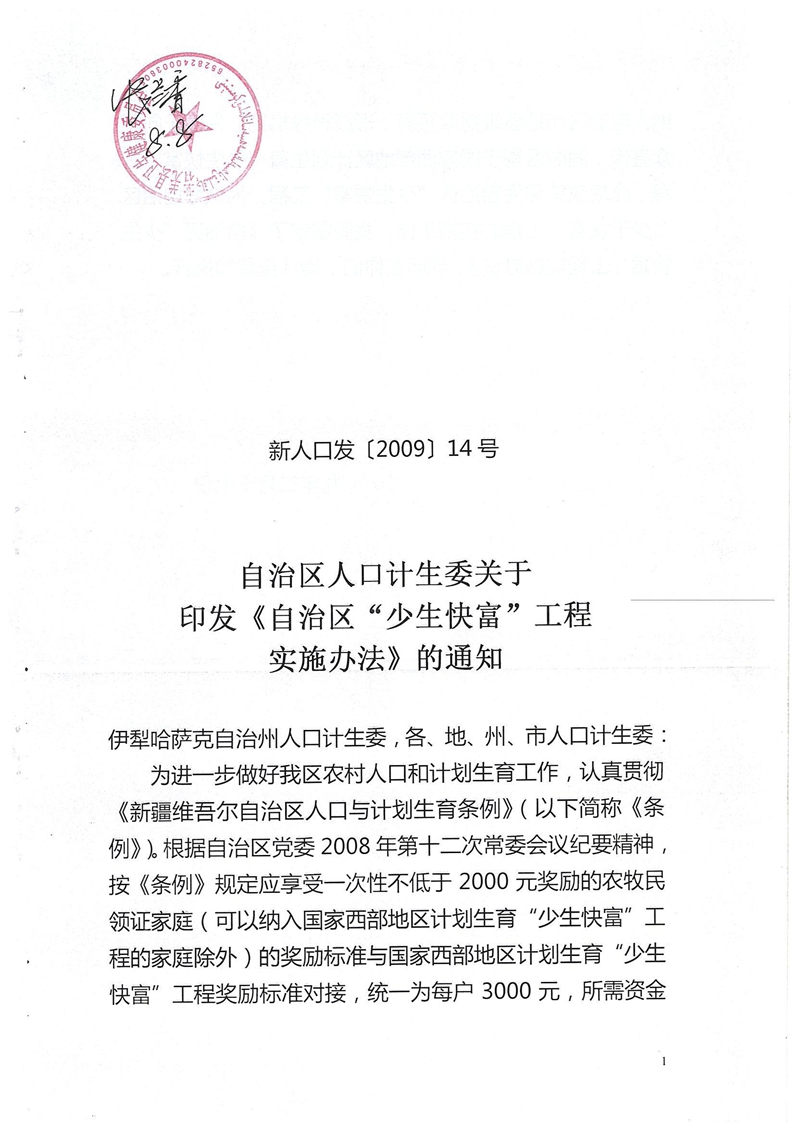 自治区人口计生委关于印发(自治区少生快富工程实施办法的通知)