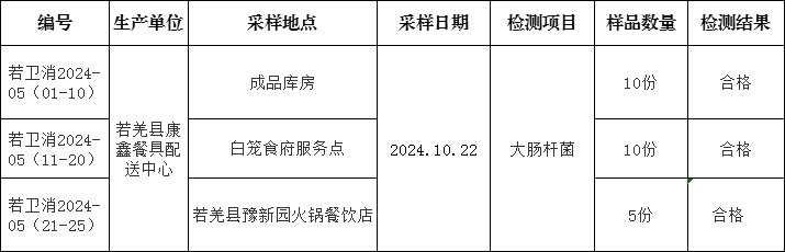 为保障广大消费者餐桌上的食品安全,让全县干部群众过一个放心的节日,9月10日,县卫健委委托县疾病预防控制中心对康鑫餐具配送中心开展餐饮具消毒效果检测,检测结果如下: