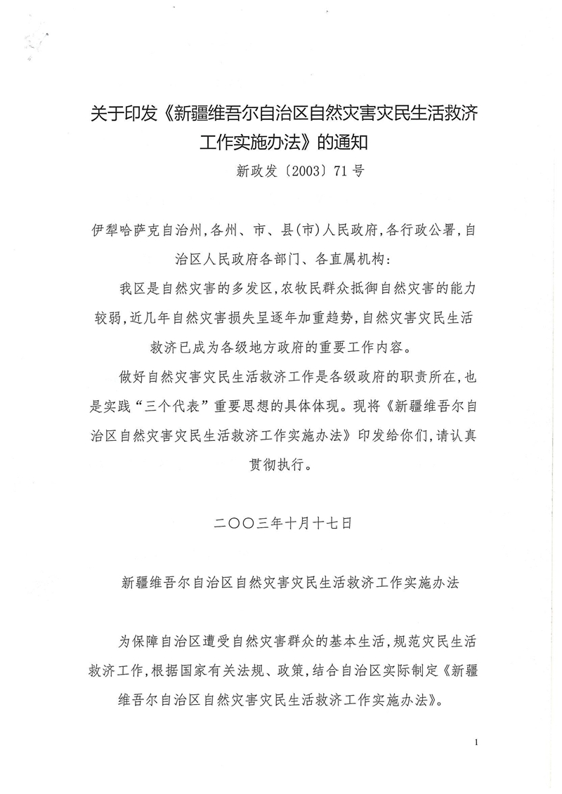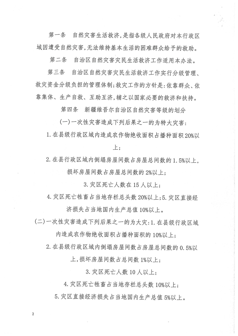 关于印发新疆维吾尔自治区自然灾害生活救济工作实施办法)的通知