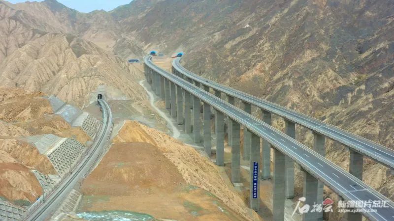 5月21日,俯瞰依吞布拉克镇至若羌县高速公路巴什库尔干1号隧道处大桥。王勇强摄